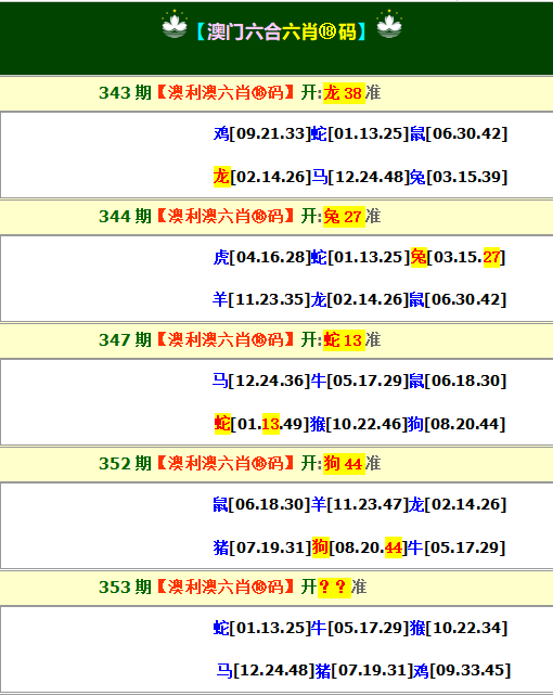 352ÆÚÆßФ:ÊóÖíÍÃÁú¹·Å£Ñò 352ÆÚ±ØÖТßÂë:42.43.39.38.44.41.47